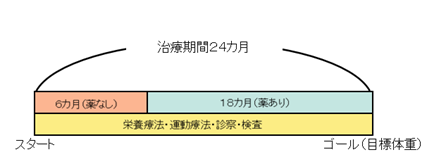 そのため、薬物療法を開始する前に、食事療法・運動療法を中心とした治療を最低6カ月継続し、治療薬の開始は6カ月以降になります。