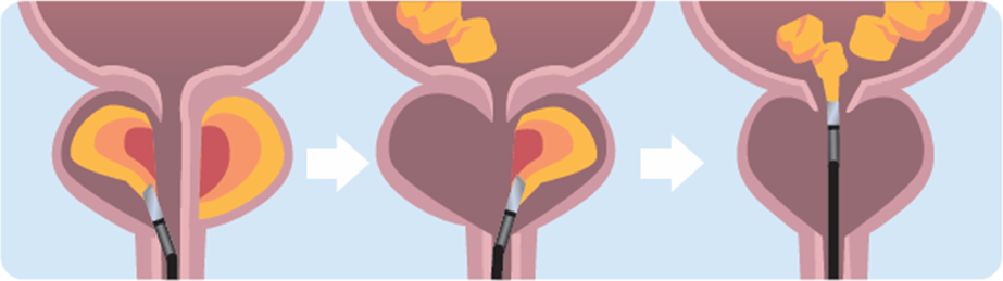 尿道から内視鏡を挿入して、レーザーを用いて前立腺の一部をくり抜く手術です。くり抜いた前立腺は専用の装置で吸引して体外に排出します。